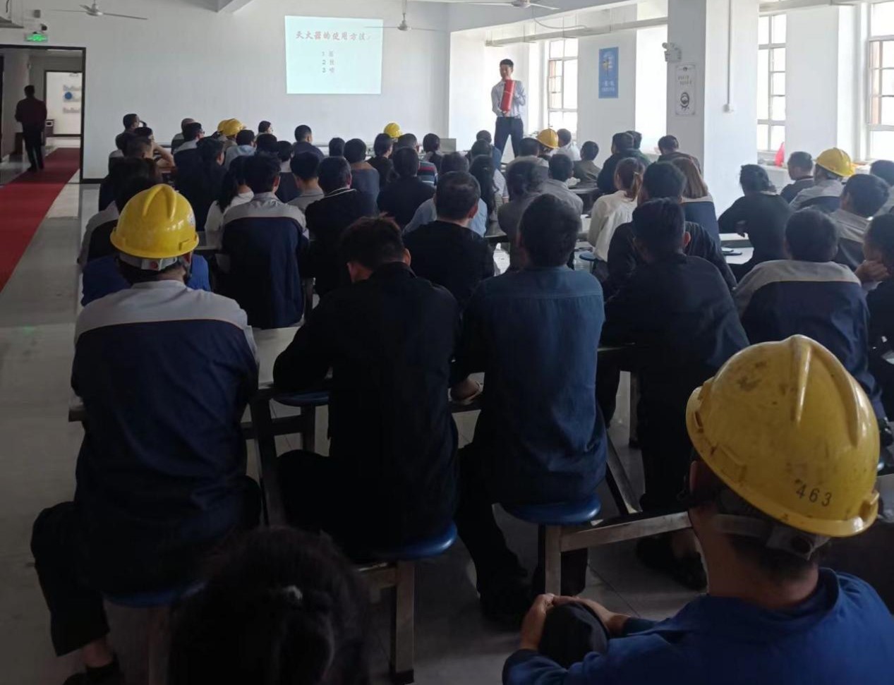为提升全体员工的消防安全意识,增强预防灭火处置能力,杜绝火灾事故发生,争做人人讲安全,个个会应急。公司邀请到胜消消防安全服务中心的唐教官于2023年5月24日下午1点在公司食堂开展消防安全知识培训讲座。公司组织300余名一线员工及管理人员参与了此次讲座。
