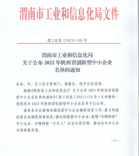 为深入贯彻习近平总书记关于“培育一批‘专精特新’中小企业”的重要指示精神,根据《陕西省工业和信息化厅 关于公布 2022 年陕西省创新型中小企业名单的通知》( 陕工信发[2023]124 号)文件精神,加强优质中小企业梯度培育工作,着力构建优质企业梯度培育体系,强化创新型中小企业、省级“专精特新”中小企业、专精特新“小巨人”企业示范引领,推动全市中小企业高质量发展。陕西省工业和信息化厅开展了创新型中小企业评定,经过陕西省创新型中小企业认定机构专家组审议与备案,陕西西部重工有限公司顺利通过创新型中小企业认定 。