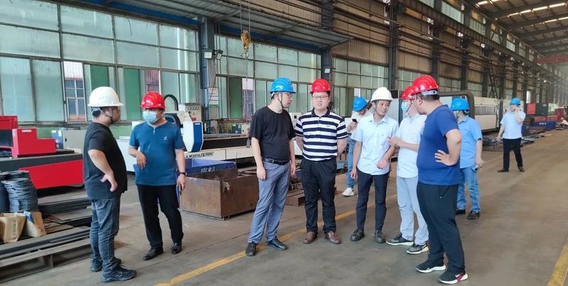 罗科长一行首先进入生产车间考察,在车间观看了我们产品实际生产现场,总经理伍明辉对公司整个的生产能力、机器设备等进行了详细介绍,此次考察主要针对武陵机械自主生产产品拉臂钩、环卫垃圾箱等产品进行商务洽谈,随行的人员包含技术、质量、采购、生产等各方面的专家,各位专家在观看武陵生产现场后均对武陵机械的智能化生产水平表示认同。