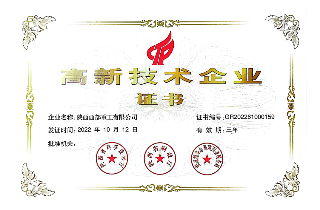 实力认可!陕西西部重工有限公司 认定为高新技术企业