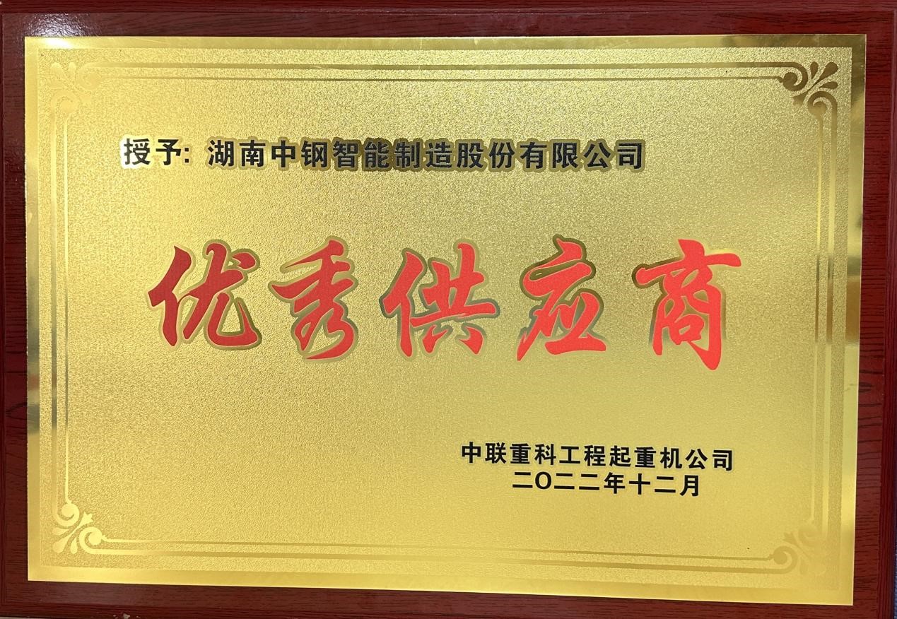 湖南中钢2022年中联工起优秀供应商奖牌